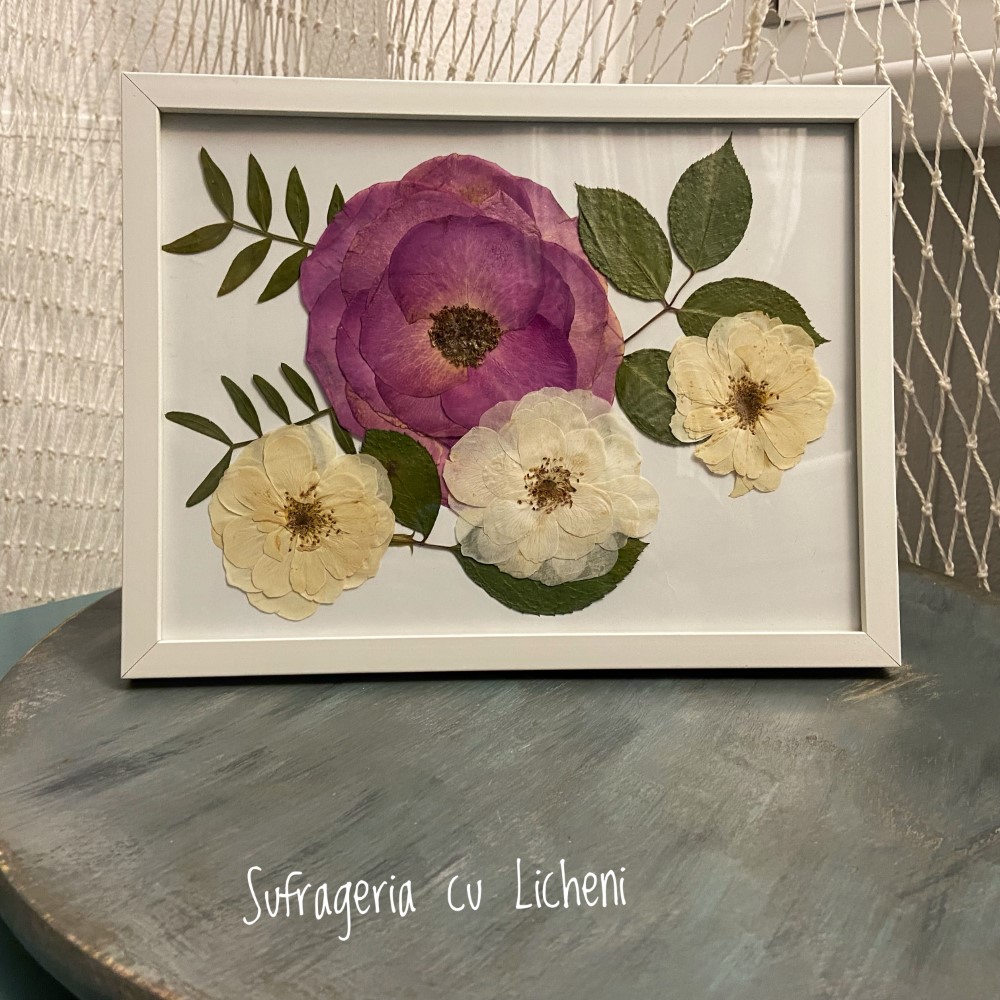 Materiale: Flori naturale presate: trandafiri, foliaj.