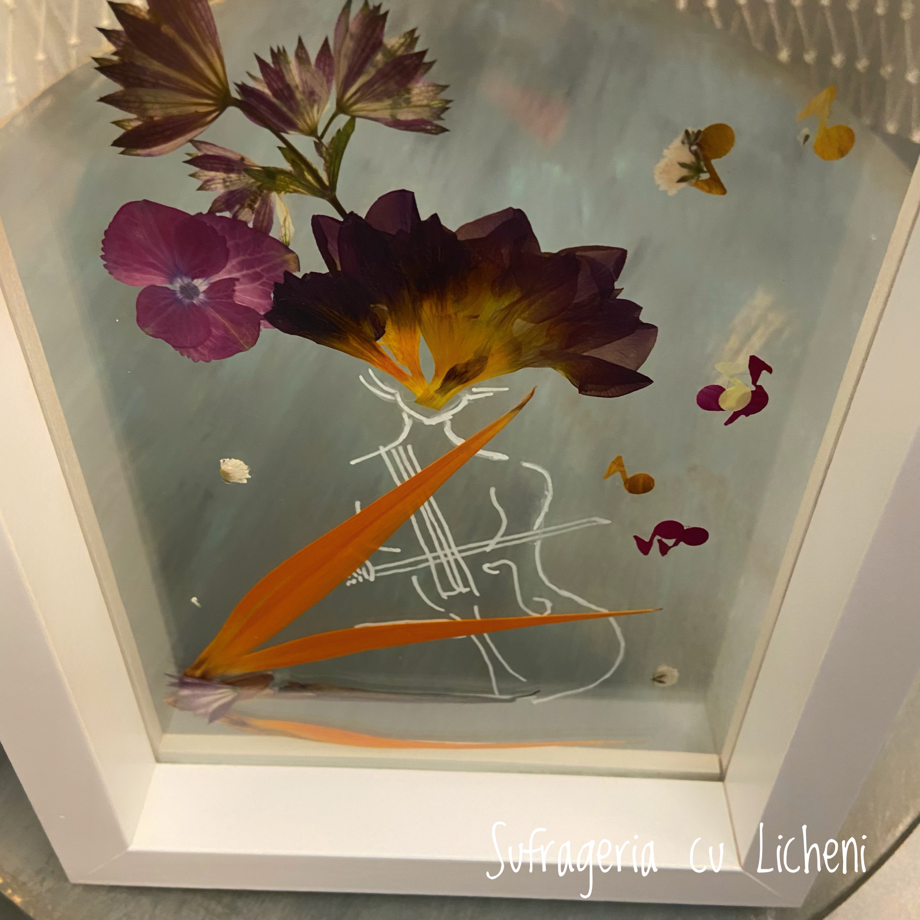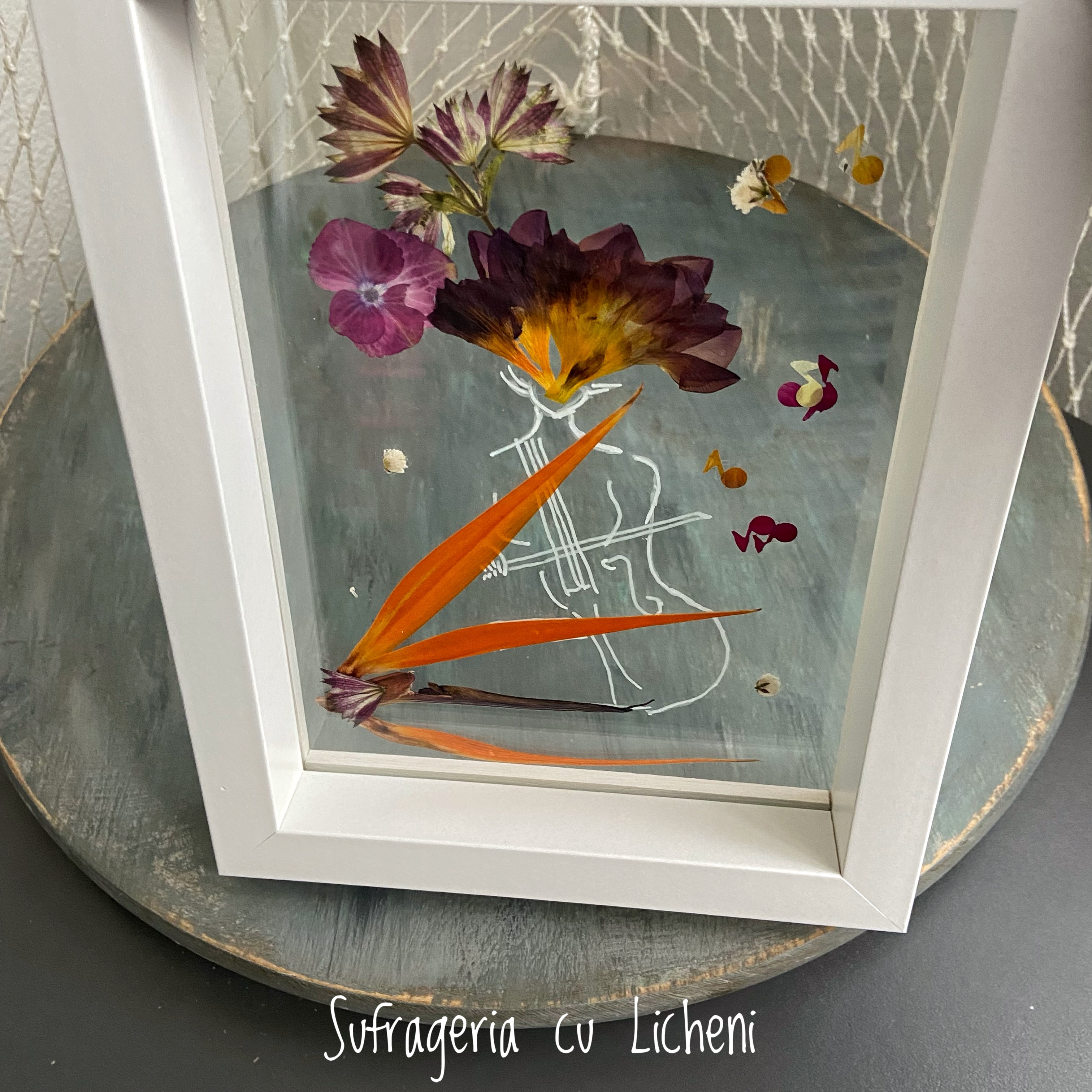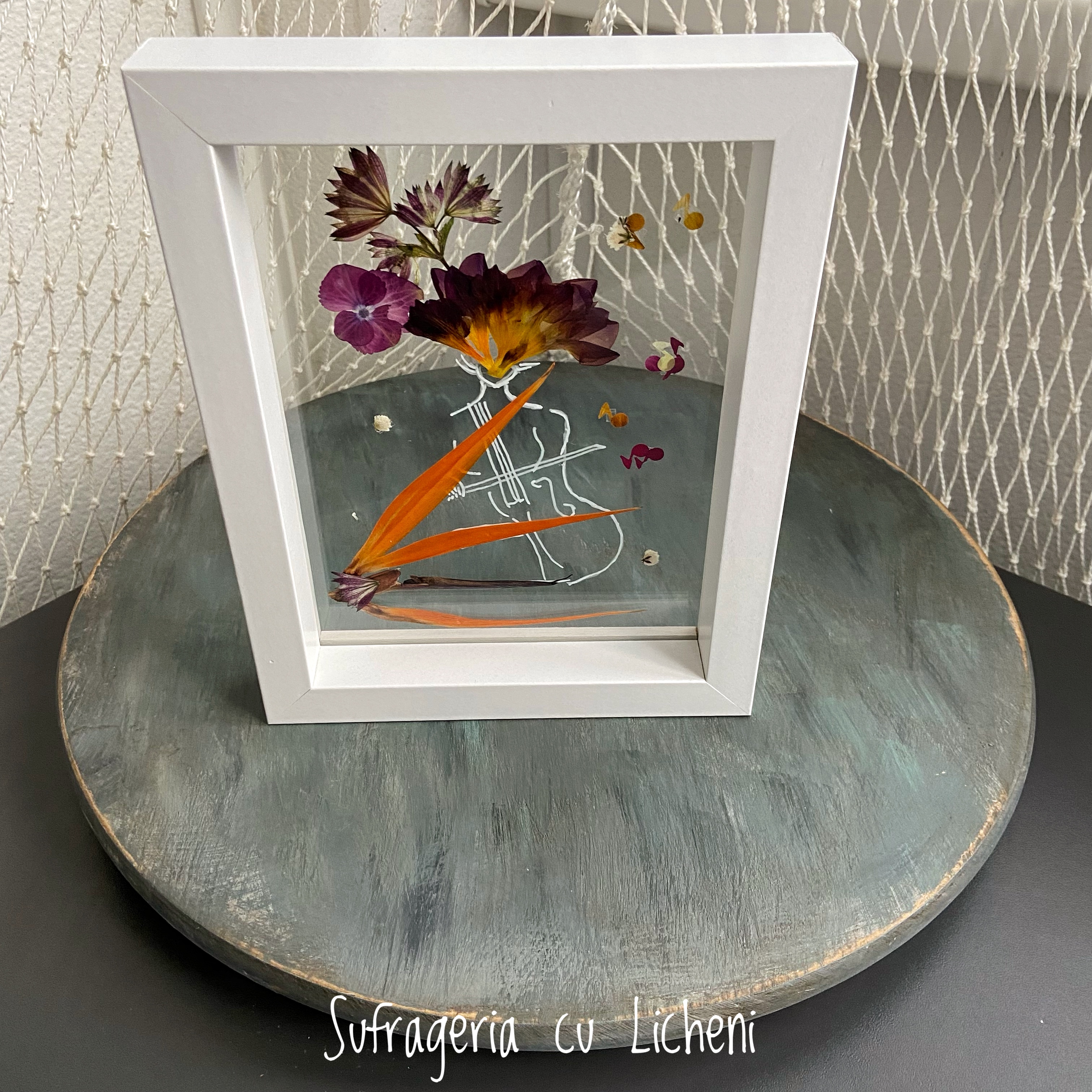 Materiale: Flori naturale presate, foliaj: alstroemeria, astrantia, strelitzia, gypsophila, hydrangea.