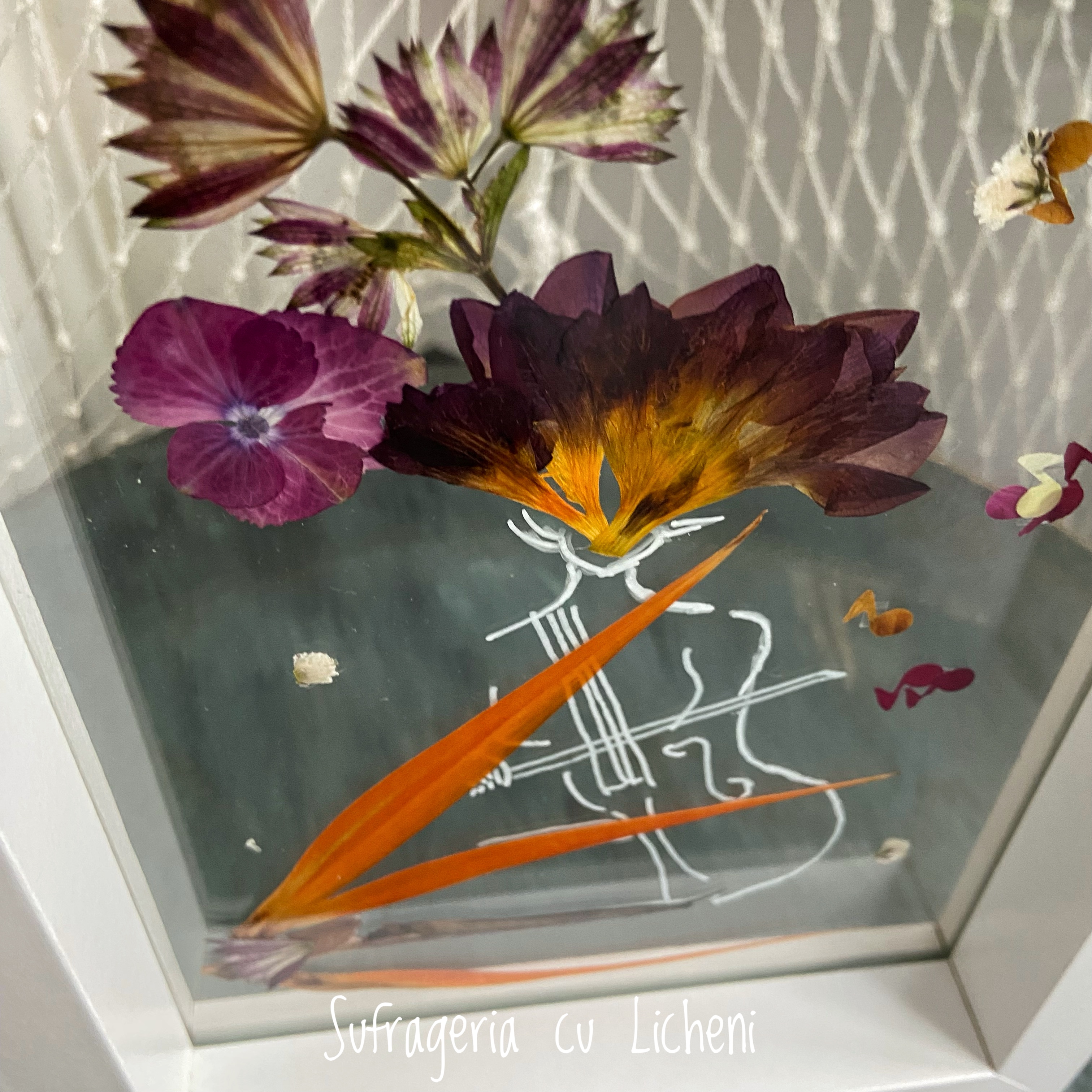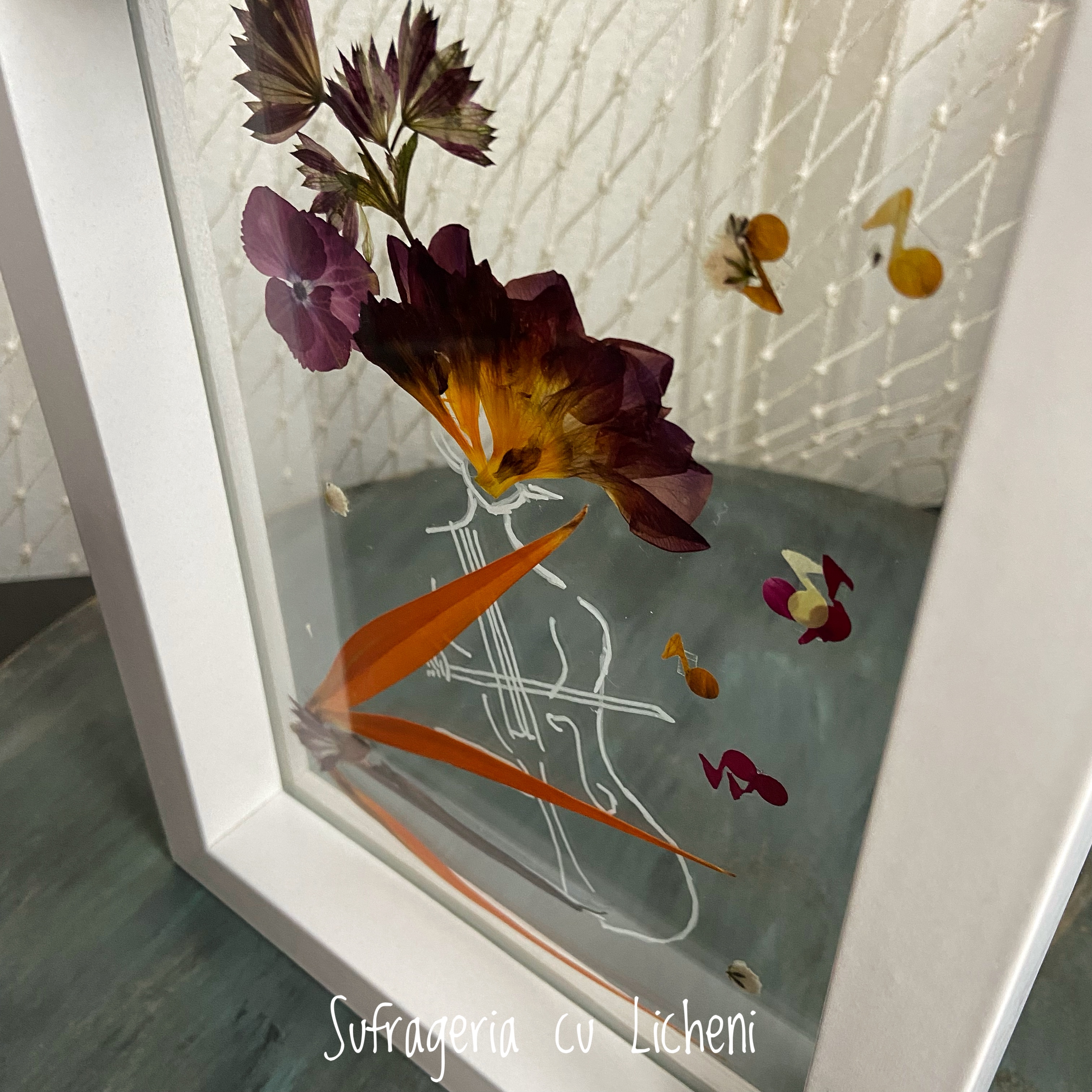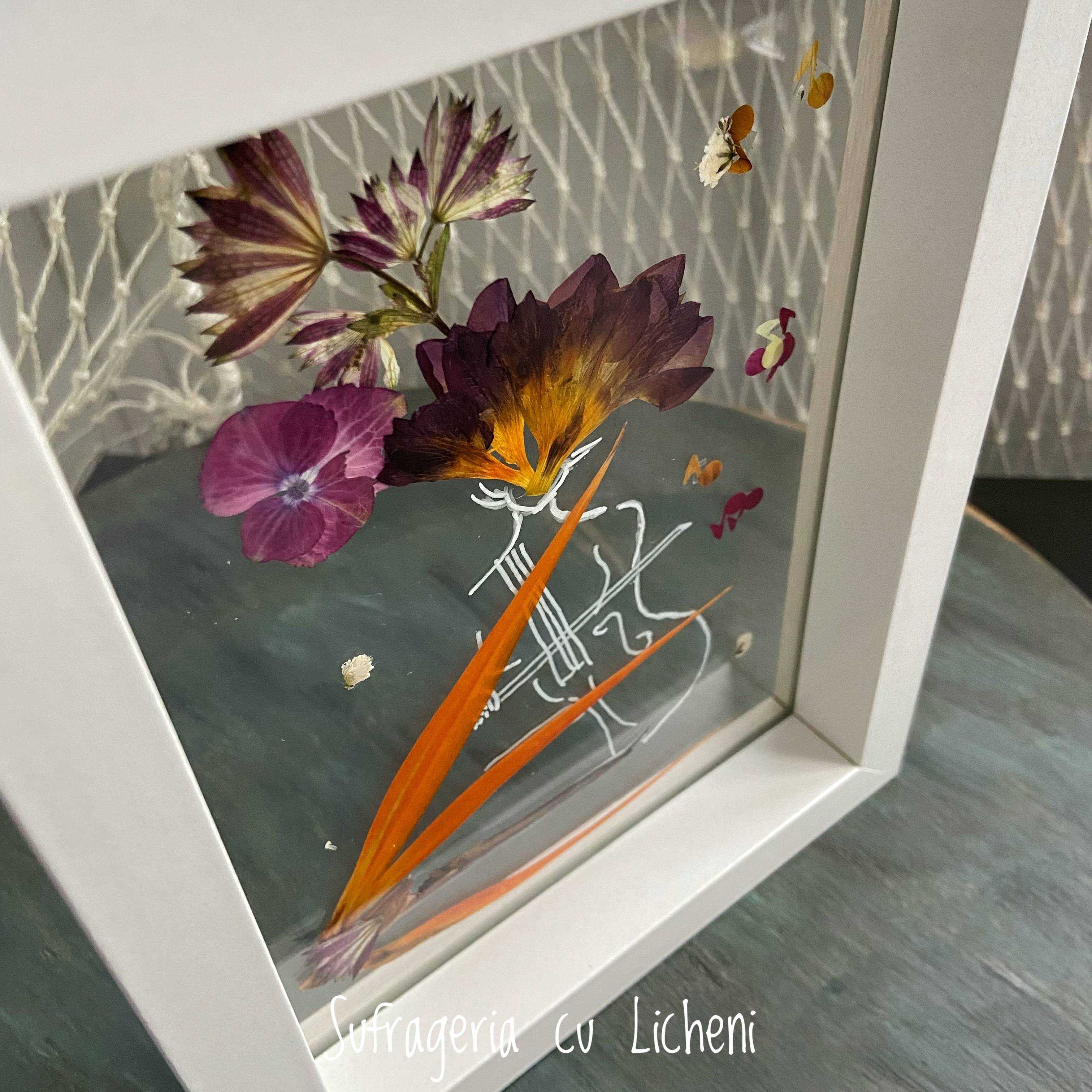 Materiale: Flori naturale presate, foliaj: alstroemeria, astrantia, strelitzia, gypsophila, hydrangea.