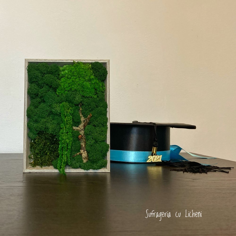 Materiale: Licheni, mușchi plat, mușchi bombat, stabilizați, amaranthus, elemete din natură.